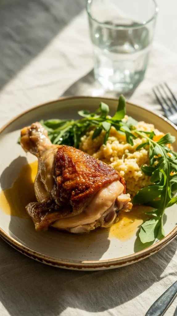 Confitar pollo significa cocinarlo sumergido en grasa (aceite de oliva, grasa de pato) a baja temperatura (80-90°C) durante 2-3 horas. Este método antiguo resulta en carne extraordinariamente tierna que se deshace. Los muslos confitados son especialmente populares en restaurantes de alta cocina y pueden almacenarse en su propia grasa hasta por un mes.