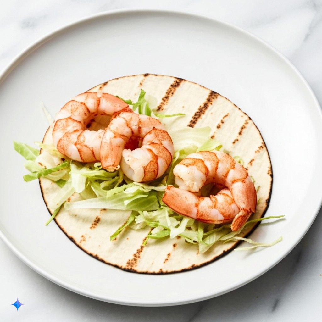 Place a few pieces of cooked shrimp in the center of a warm tortilla.